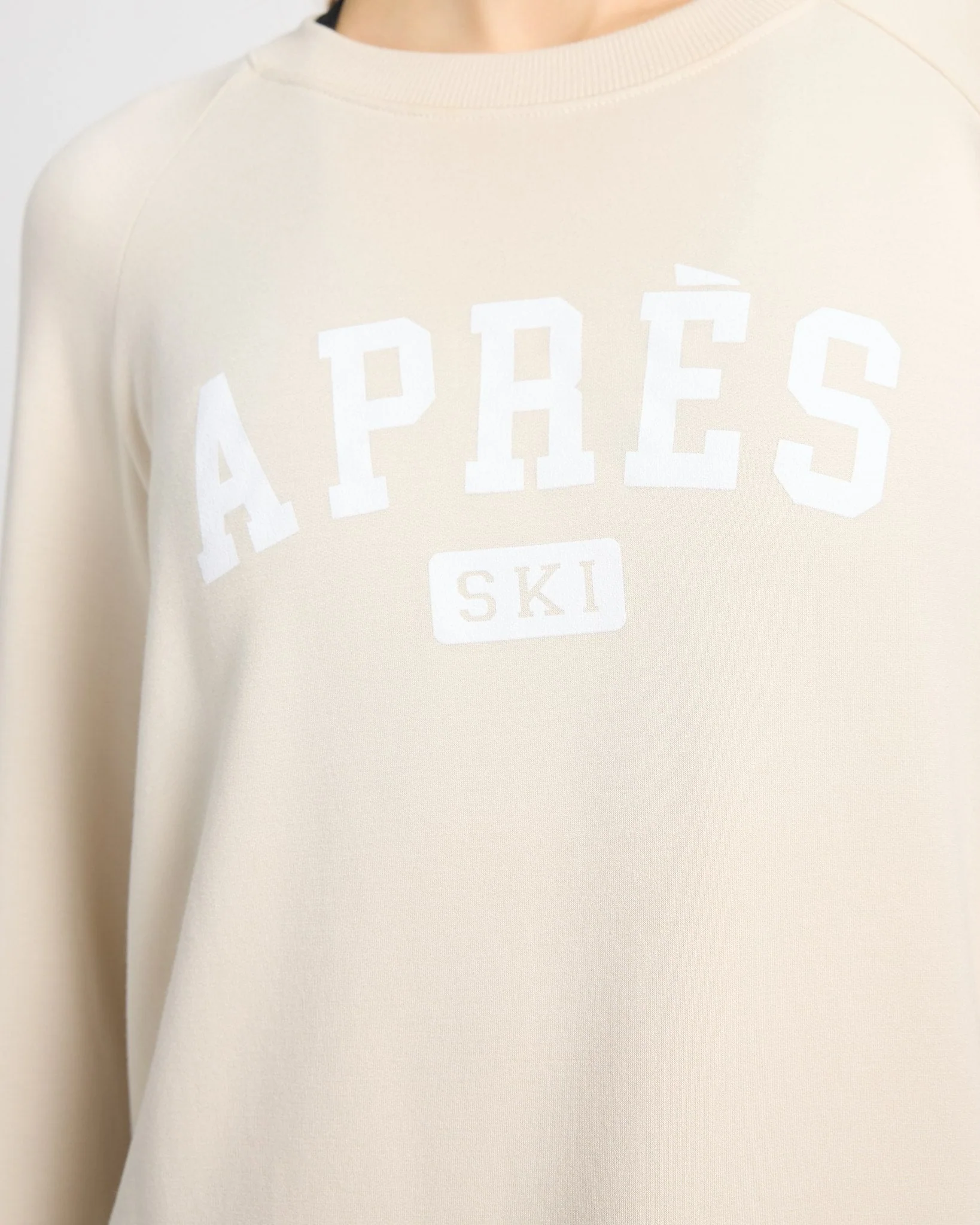 Slope-day softness, no lift ticket required. This relaxed-fit sweatshirt features a classic crew neckline, raglan sleeves, and banded trims for a timeless feel. āAPRĆS SKIā is printed across the chest, all in a soft, stretchy French terry knit made in the USA.