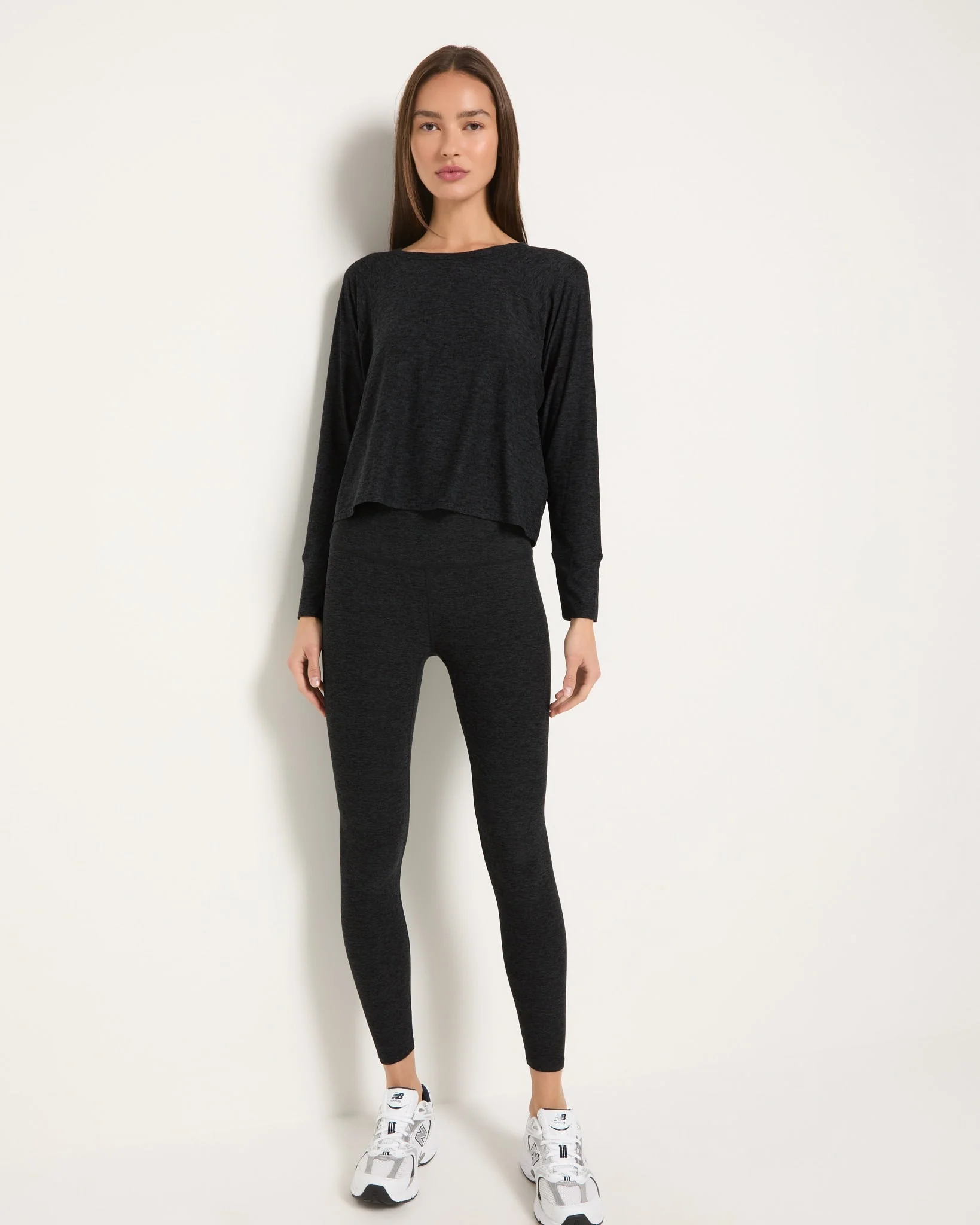 Easy comfort for any pace. This long-sleeved top features a relaxed fit, round neckline, and slim sleeves for a streamlined feel. Made from a soft, stretchy spacedye knit that’s lightweight enough to move with you from warm-up to wind-down.