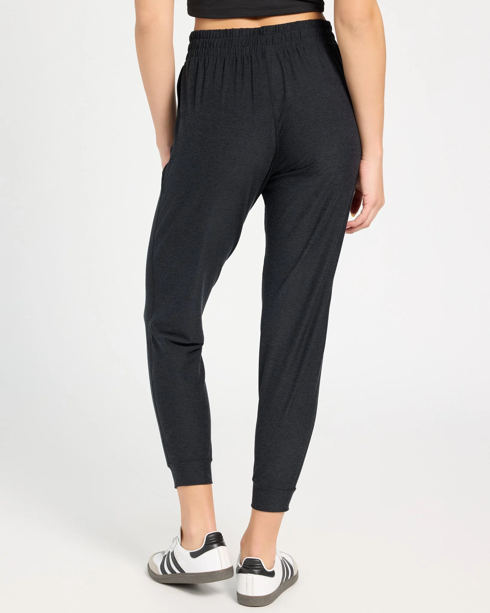 Ease into comfort. These cropped joggers feature a flattering, tapered fit with an elastic waistband, side pockets, and cuffed hems. Made from our softest midweight spacedye knit for that just-right feel after movement—or anytime.