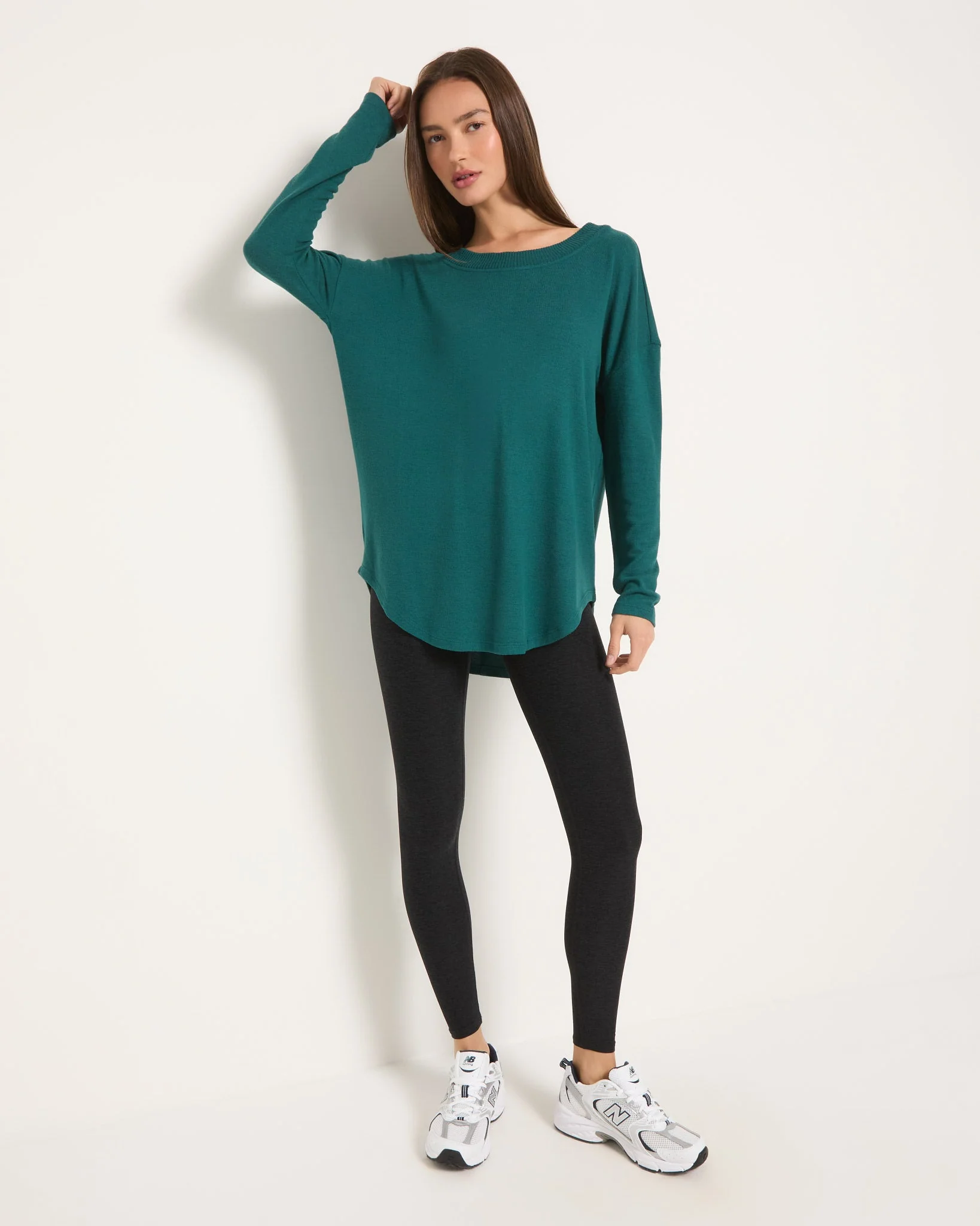 A gentle companion for slow mornings and mindful motion. This long-sleeve top flows effortlessly over the body in soft hacci knit — inviting ease, warmth, and a quieter rhythm to your day.